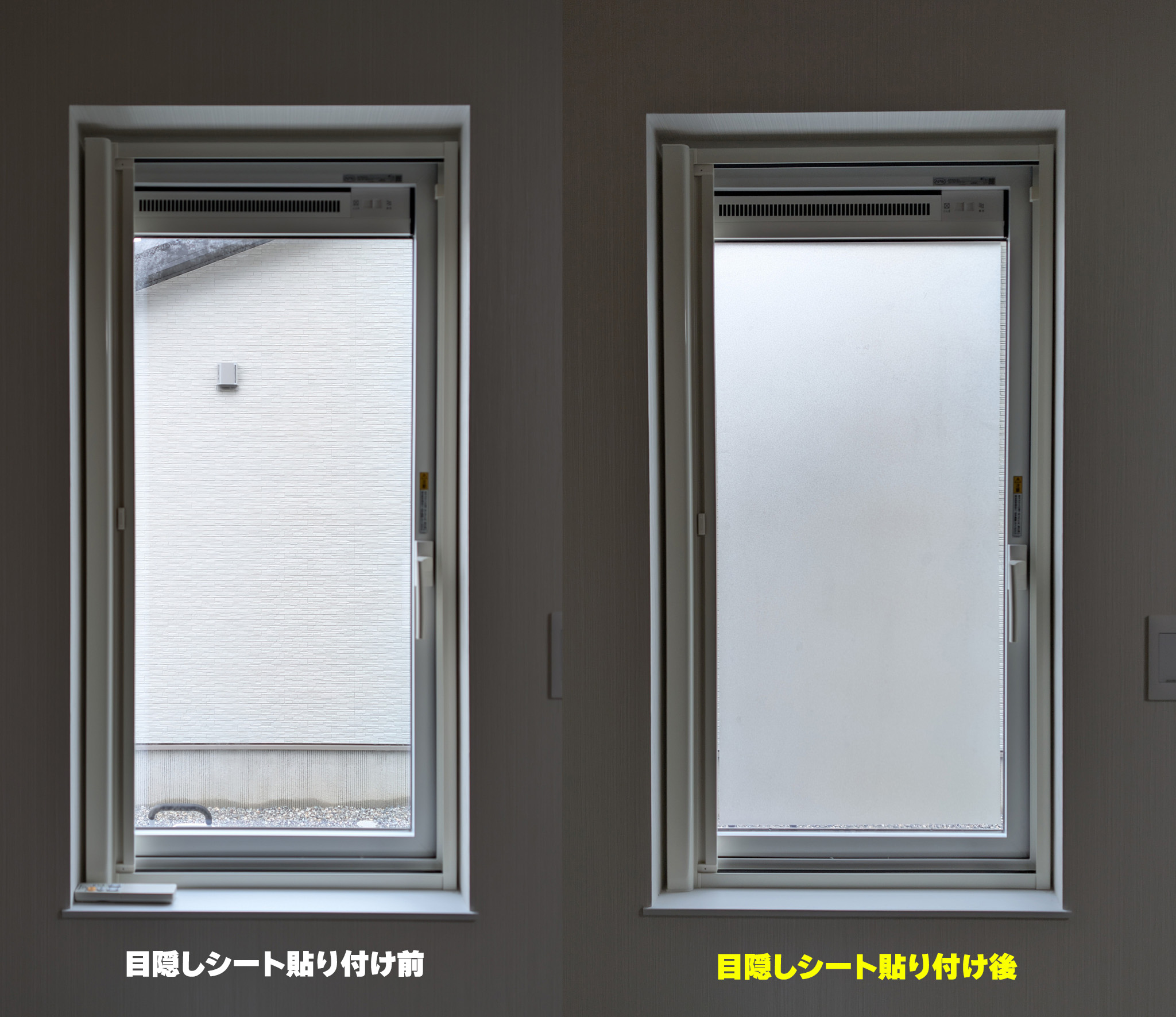 窓にはカーテンやブラインドのようなものがない状態なので、「窓ガラス目隠しフィルム」を購入して貼ってみました。