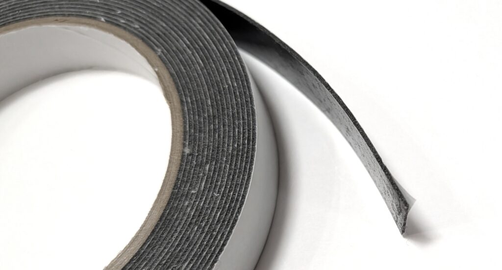 標準の両面テープは薄いタイプで、ザラザラした土間コンにフィットしなさそうだったので、少し厚みがあるクッション付きのものを用意しました。