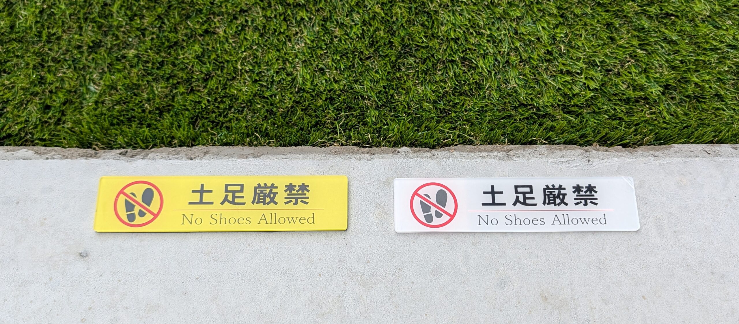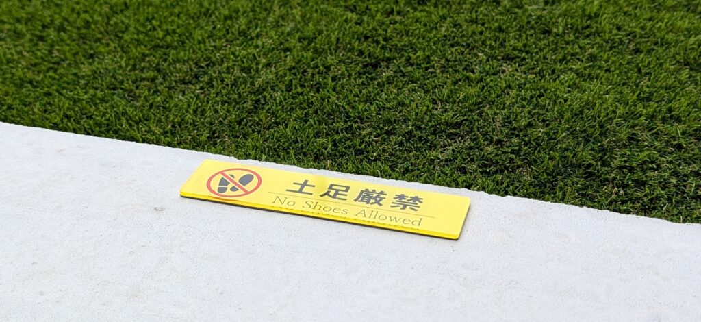 庭の人工芝を「土足厳禁」にしたいので、注意を施すためのプレートを購入しました!プレートのサイズは130mm×30mmです。価格は598 税込(※2025/10/22の時点)