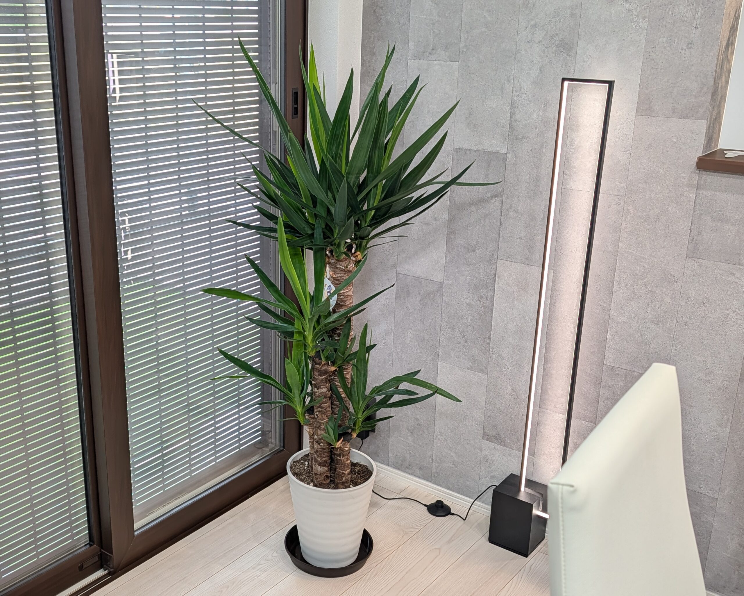 ユッカを置いてみて感じたのは、植物の力で空間が見違えるほど変わるということ。