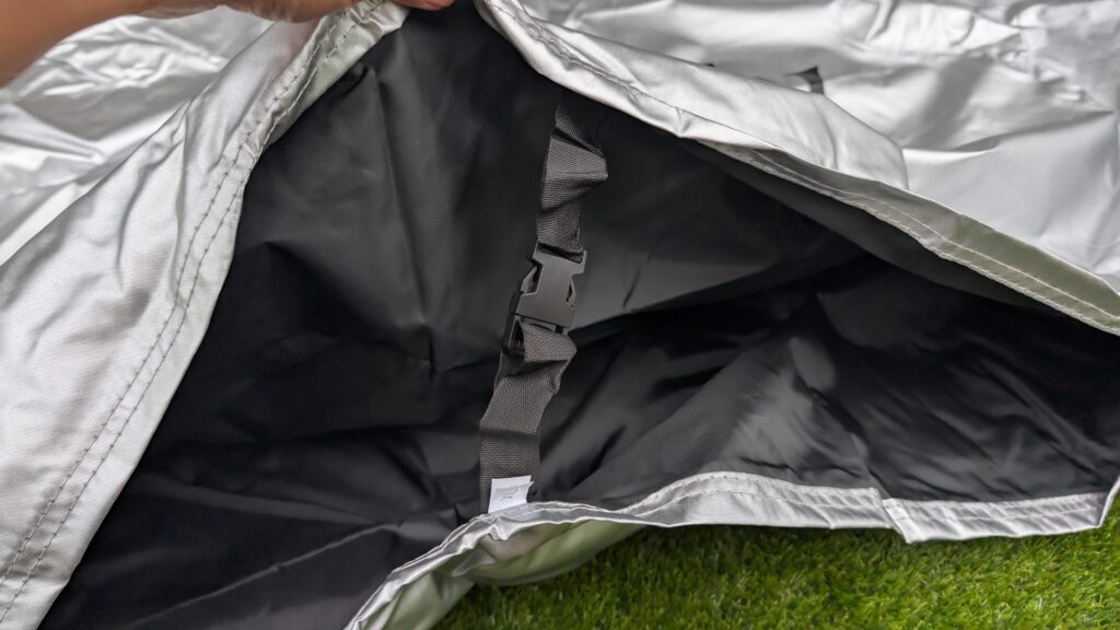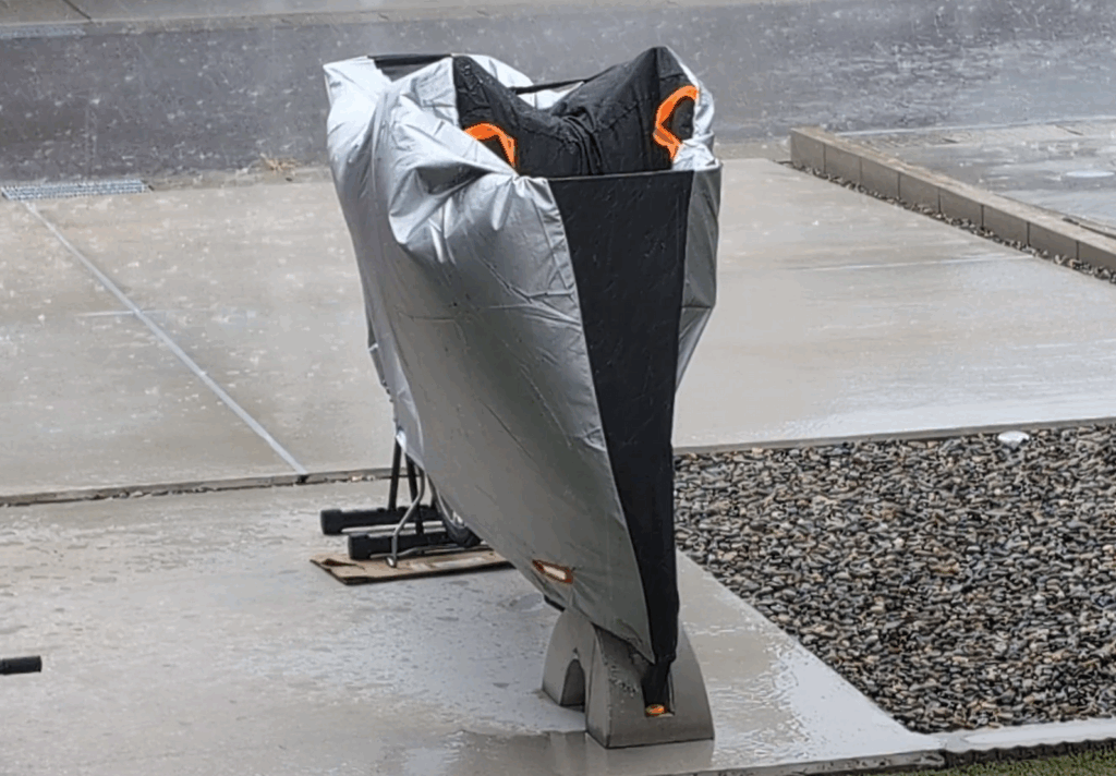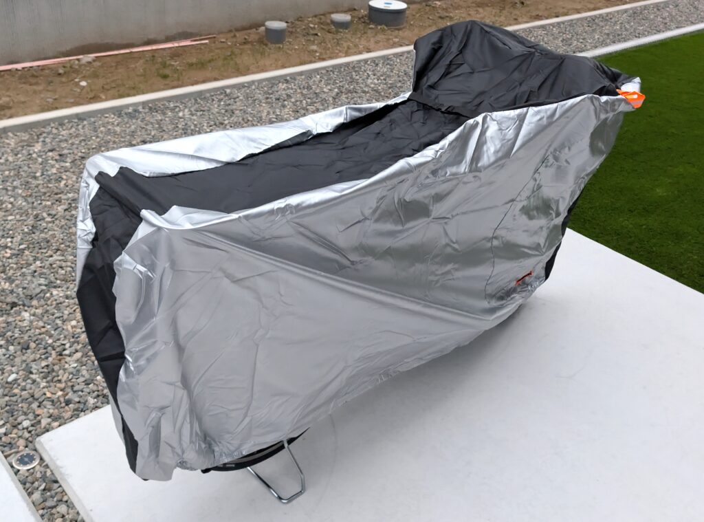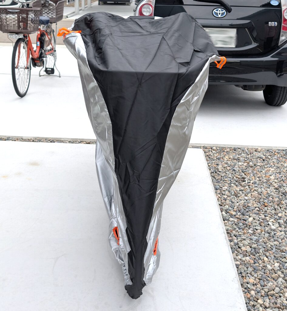 もう一つの注意点は「風」です。しばらく使ってみると、自転車が強風にあおられて度々倒れてしまいました。風が強い場所でカバーを使用する場合は、しっかりとした自転車スタンドが必要です。