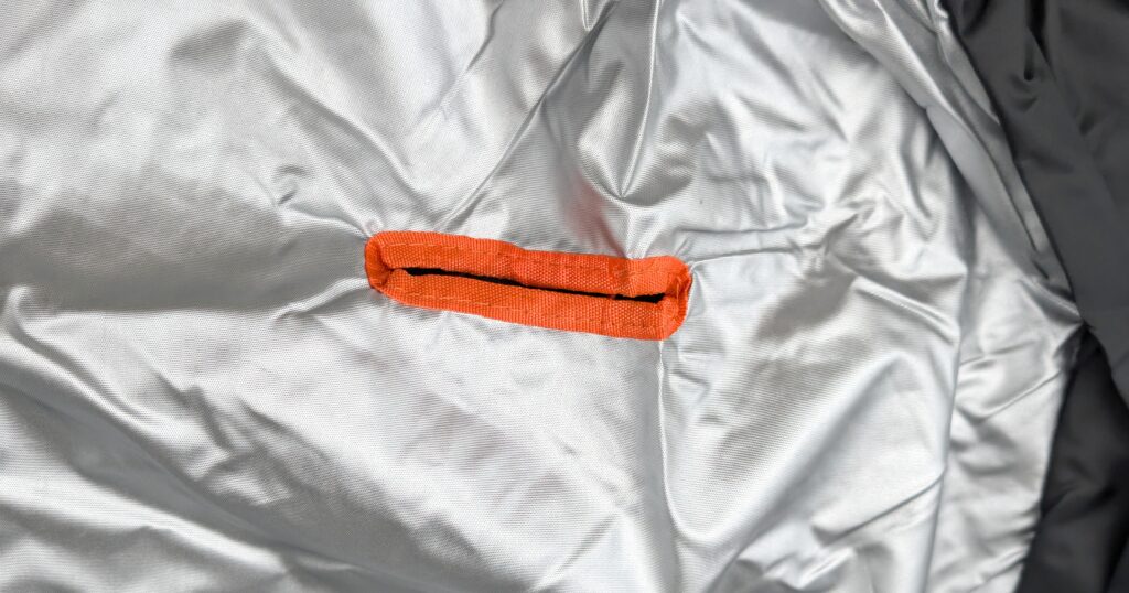 シルバーの自転車カバーの付属品を見ていきます。カバーは収納袋に入っています。