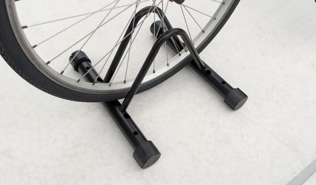 - 重いコンクリート製や地面にしっかりと固定できる自転車スタンドを用意する。