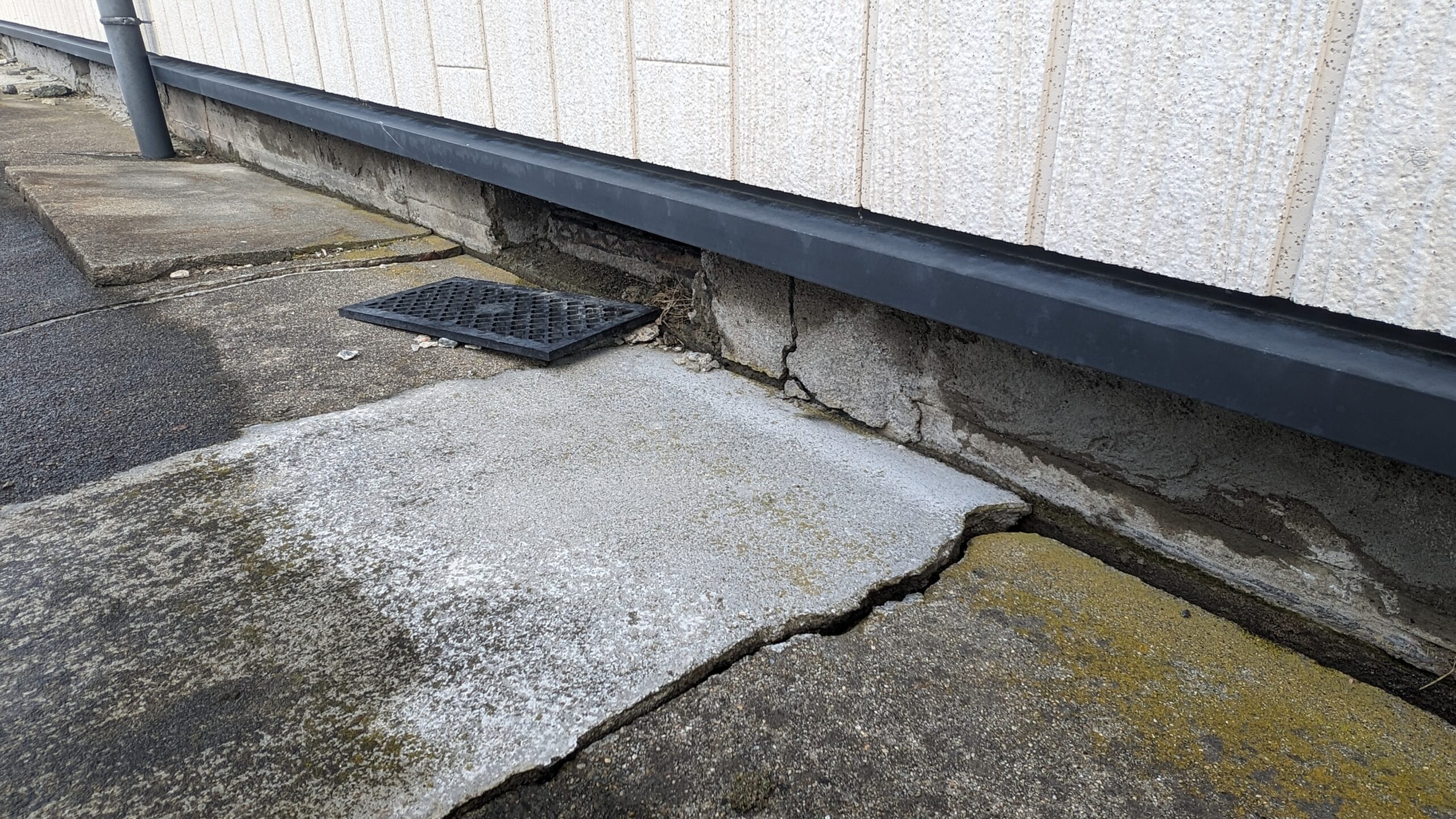 花壇や駐車スペースの土間コンなども、大きく破損しひび割れがあります。